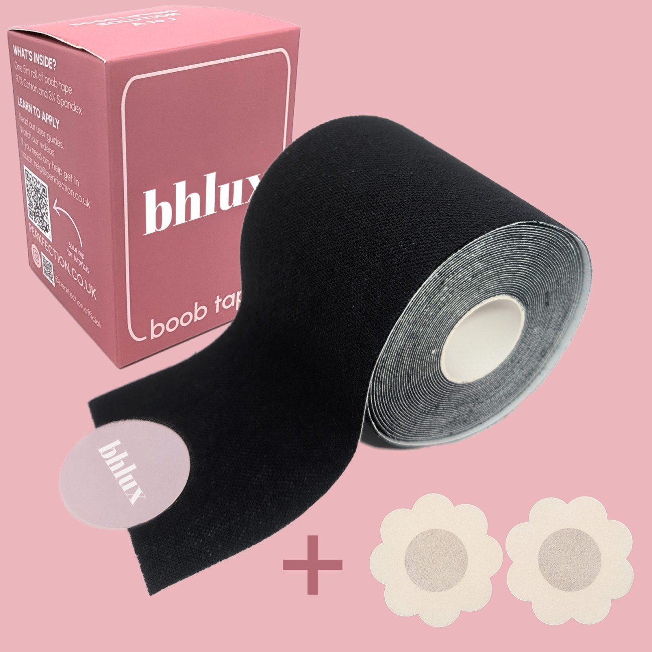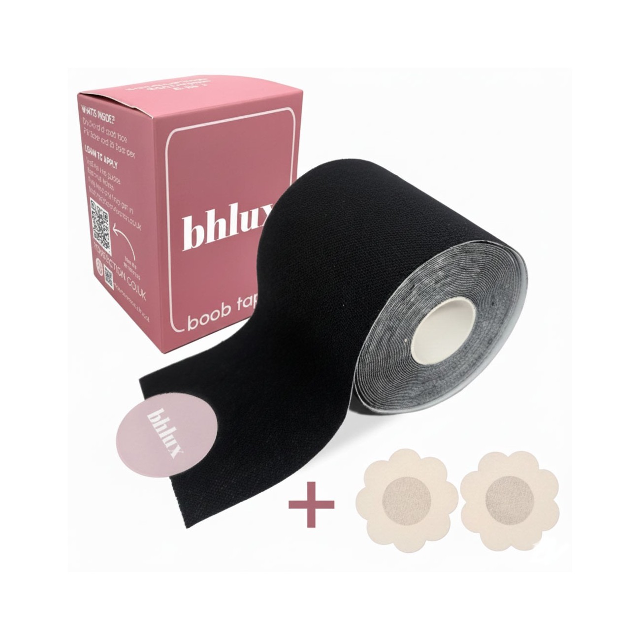 Forme, lifte und sichere deinen Look - mit der hautfreundlichen Boob Tape Rolle von BHLUX in Schwarz – perfekt unter dunklen Stoffen.