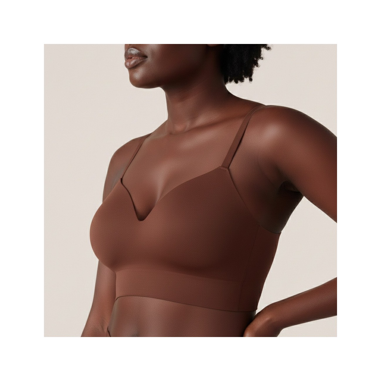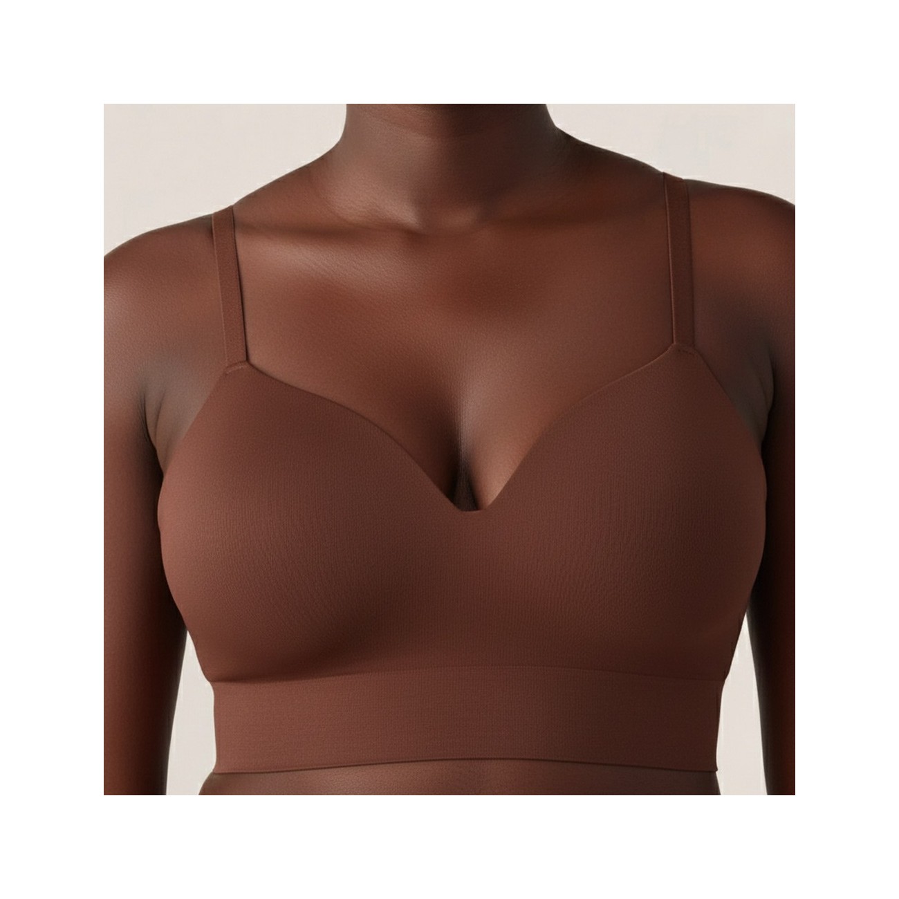 Der BHLUX® Supportive Komfort-BH ohne Bügel in Braun bietet sanften Halt ohne Druckstellen und ein besonders angenehmes, natürliches Tragegefühl. Dank der nahtlosen Verarbeitung bleibt er unter Kleidung glatt und unauffällig - ideal für Alltag, Homewear und lange Tragezeiten.