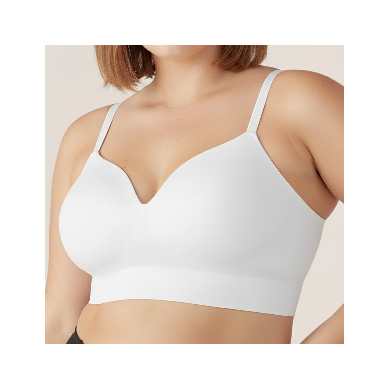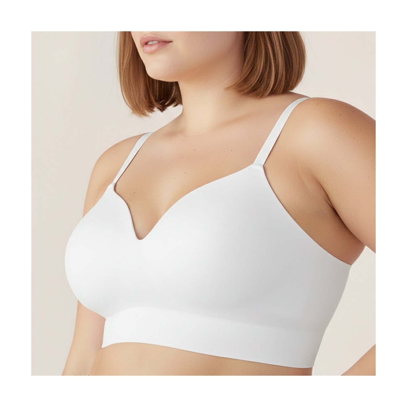 Der BHLUX® Supportive Komfort-BH ohne Bügel in Weiß bietet sanften Halt ohne Druckstellen und ein besonders angenehmes, natürliches Tragegefühl. Die nahtlose Verarbeitung sorgt für eine glatte Silhouette unter heller Kleidung - ideal für Alltag, Homewear und lange Tragezeiten.