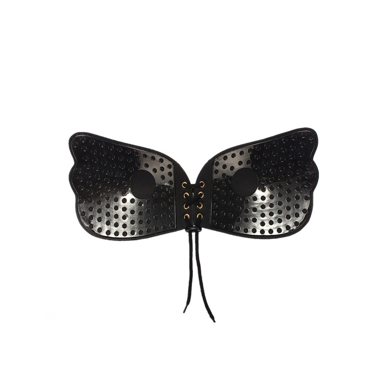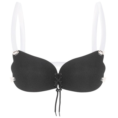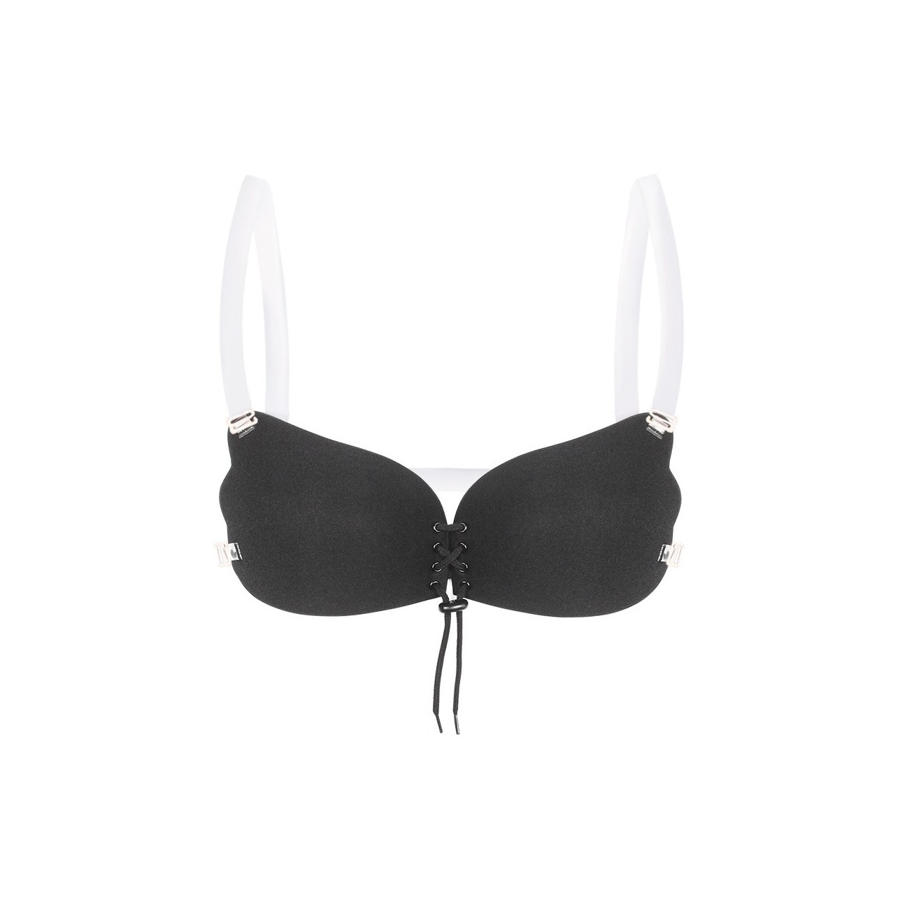 Eleganter Klebe-BH in Schwarz mit Push-up-Effekt und transparenten Trägern.