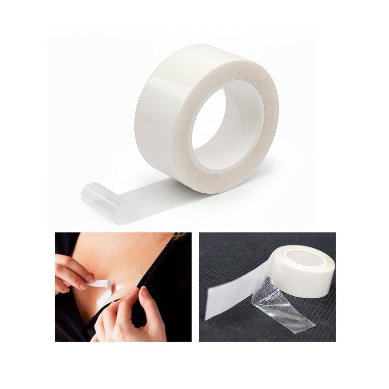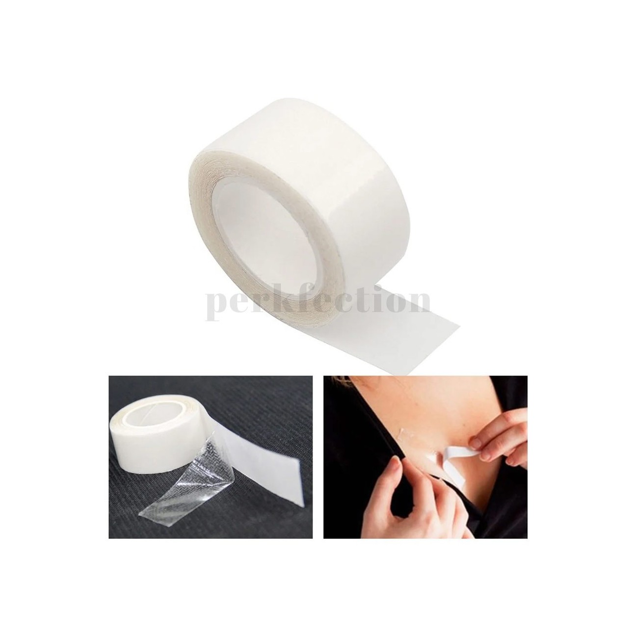 Eine 5 m Rolle doppelseitiges Fashion Tape für zuverlässigen Halt. Ideal zum Fixieren von Ausschnitten, Säumen und Kleidungsstücken. Diskret, hautfreundlich und bequem zu tragen.